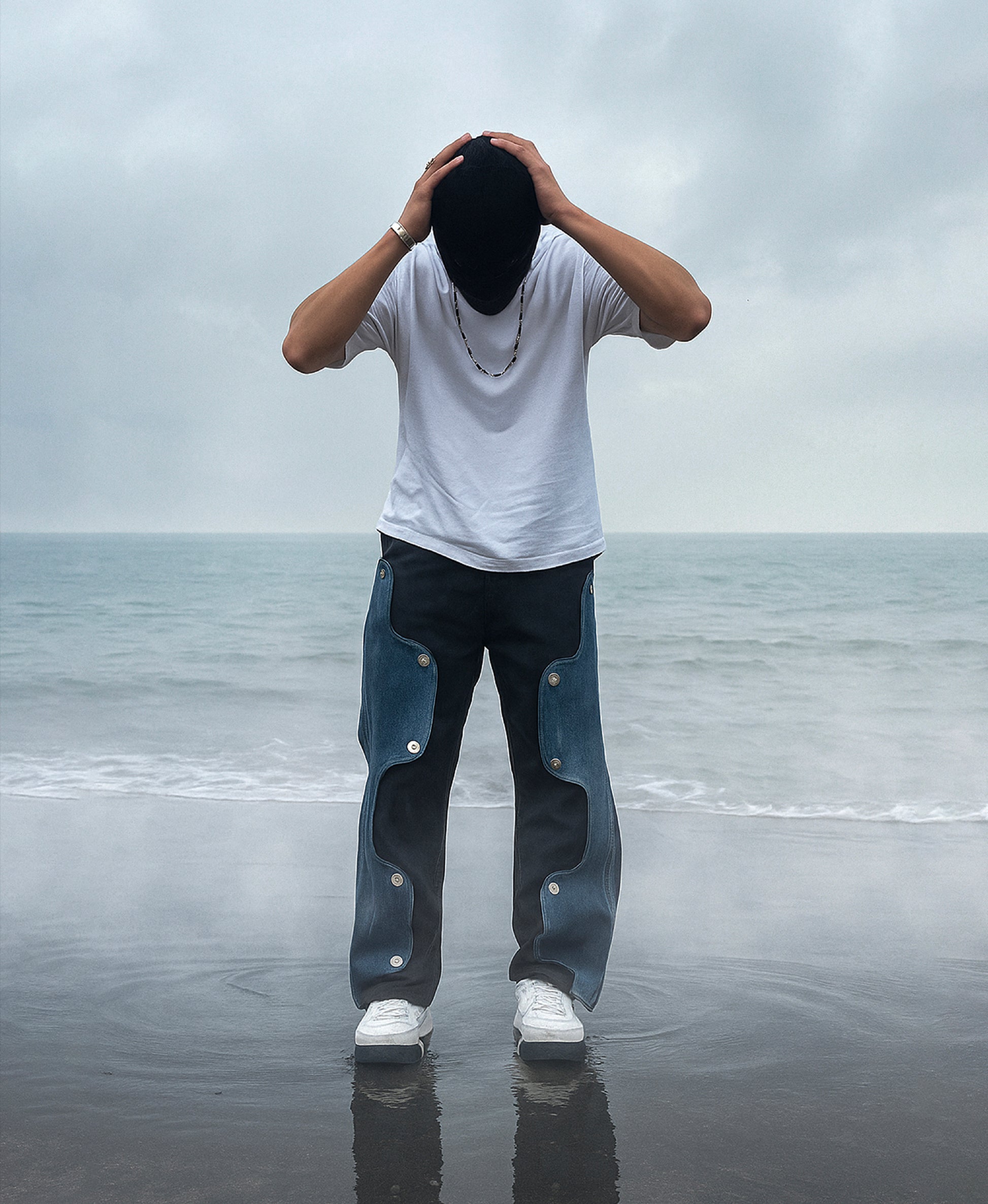 1 OF 1 BLUE DENIM SHILED DESIGNER JEANS