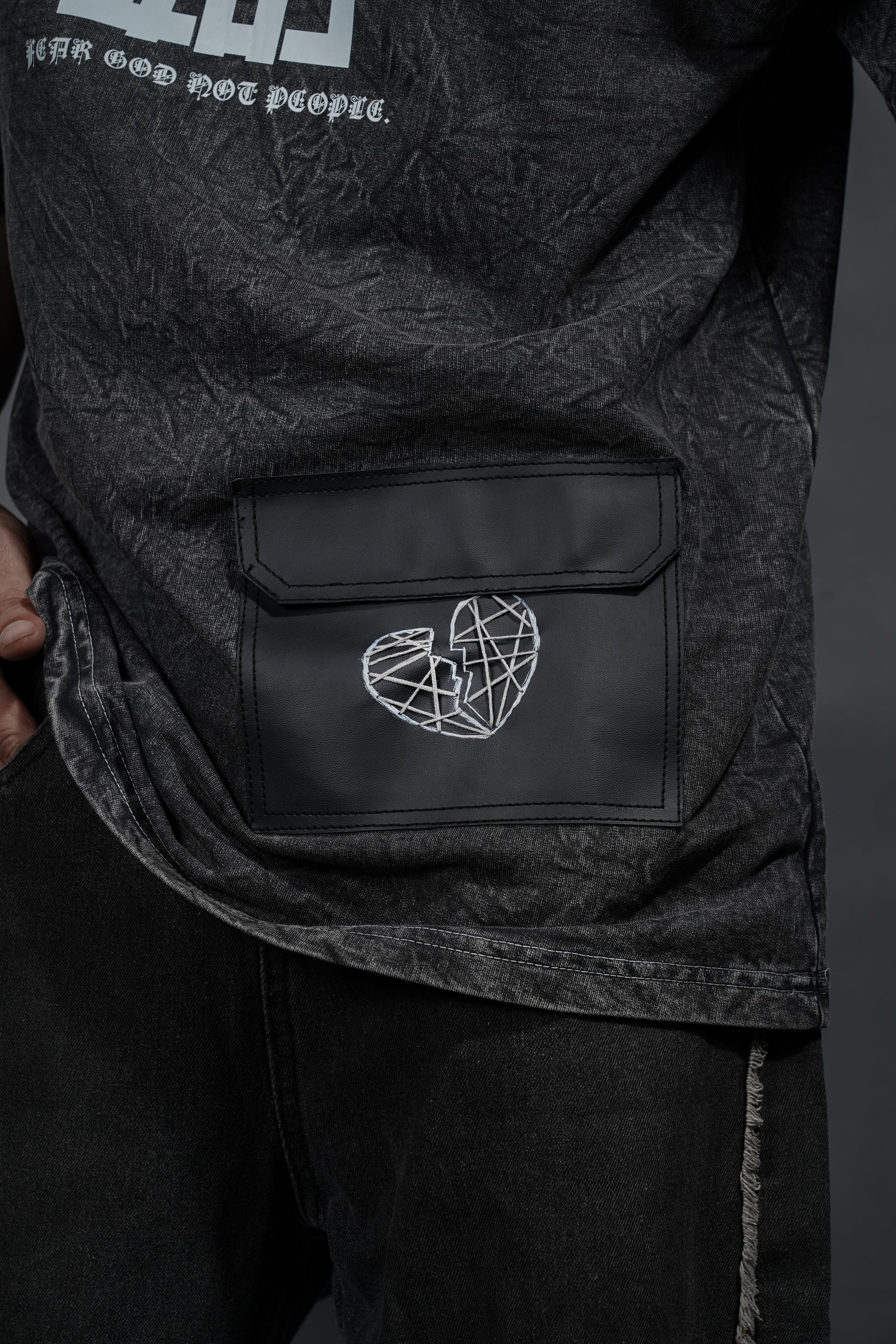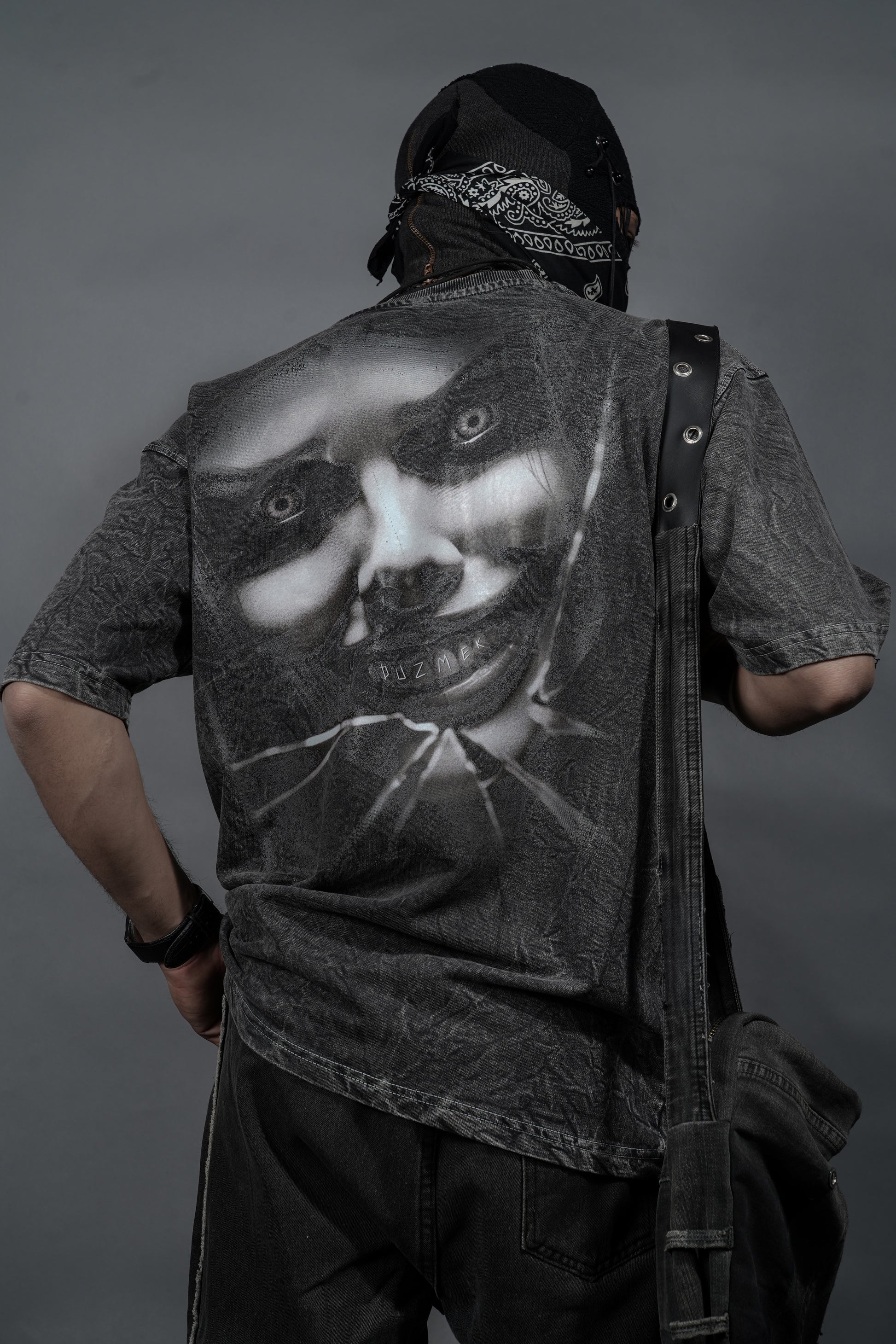 The Psycho Oversized Tee, 240GSM French Terry 100% Cotton, Black Acid Wash.